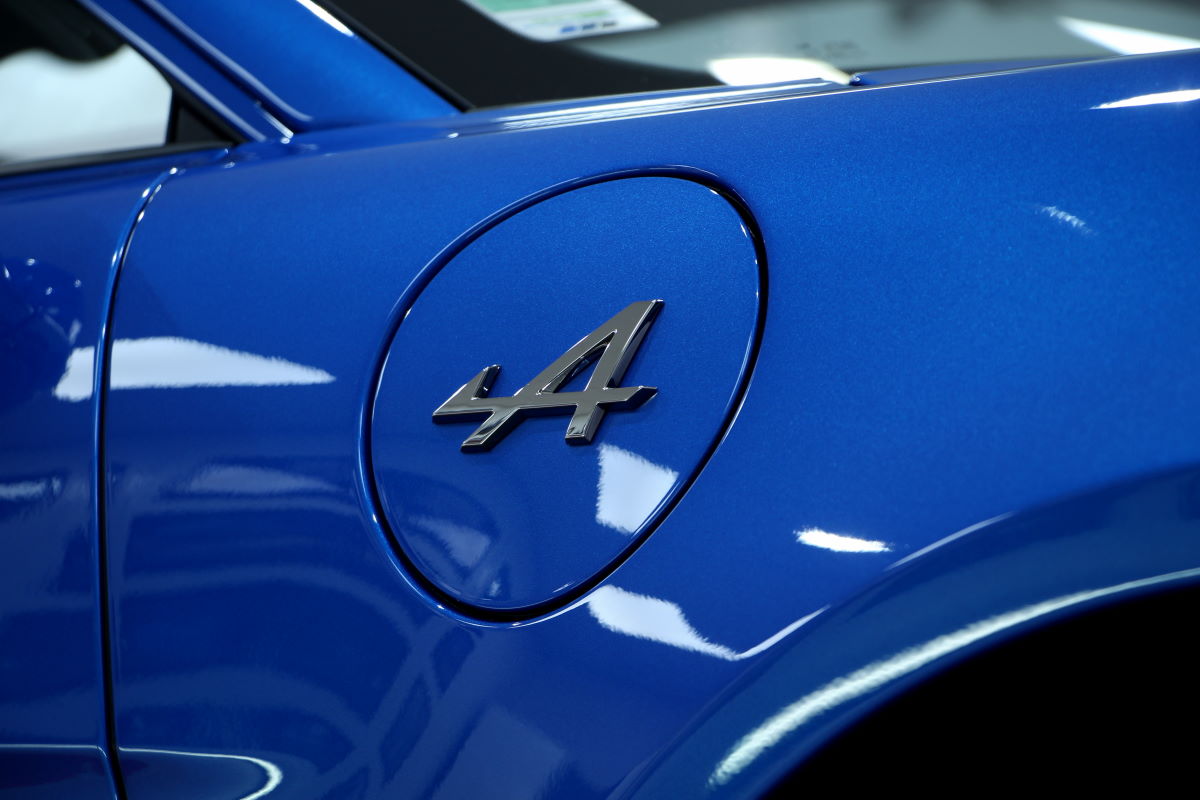 La carrosserie, typique de la nouvelle Alpine A110 reprend quelques détails historiques (le logo Alpine en rappel sur la trappe à carburant), l’embossage sur les ailes arrières, les feux ronds à l’avant etc.