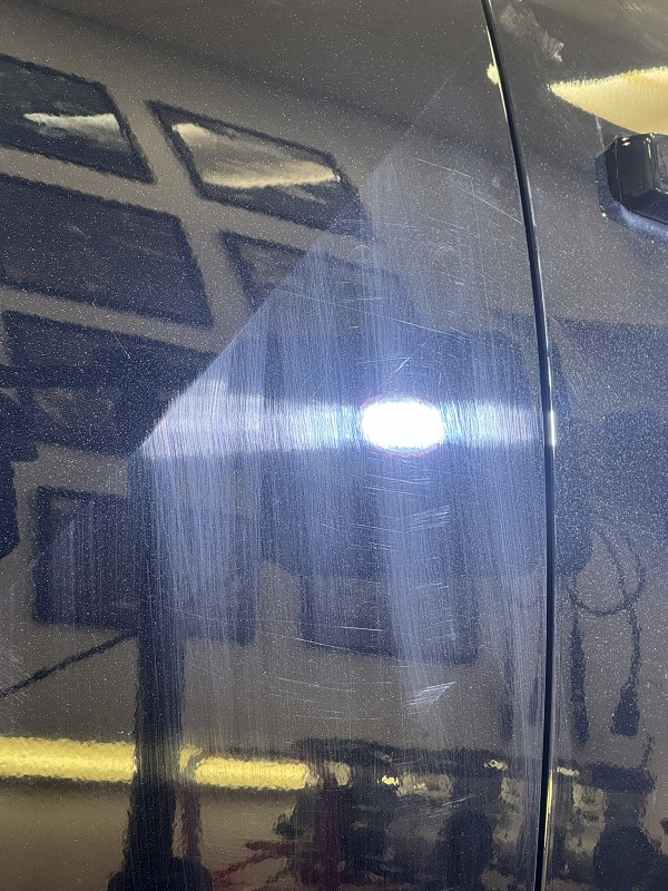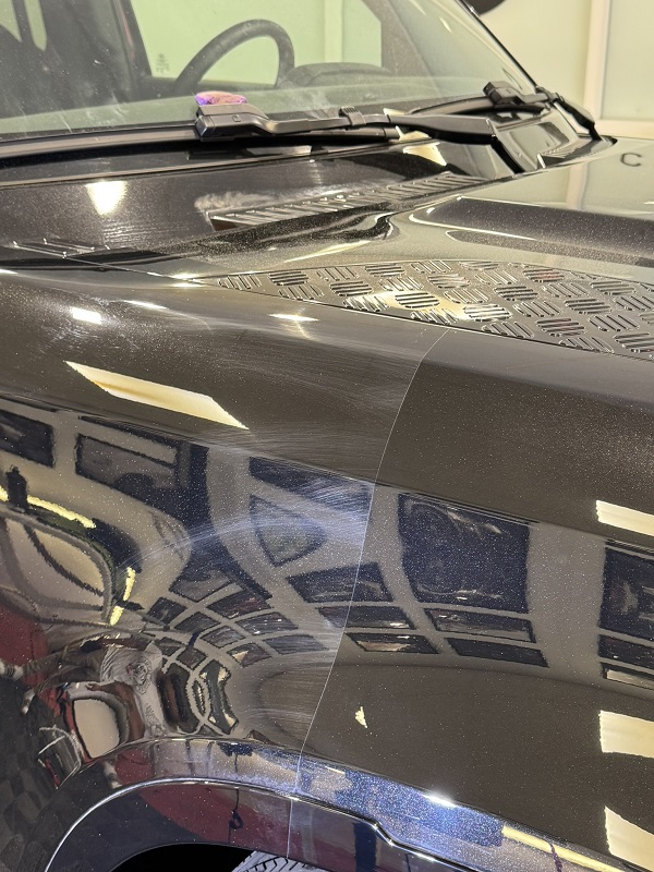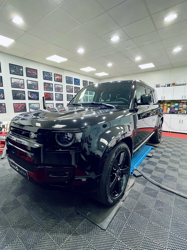 Un véritable défi, on partait vraiment de loin sur ce Land Rover Defender… Le véhicule présentait des marques de ponçage à l’éponge grattante absolument partout. Parfois très incrustées, ces marques ont nécessité de grosses phases de ponçages à l’eau (wetsanding) afin d’en venir à bout. Pourtant seulement kilométré de 5000kms, ce Defender en paraissait 200000…