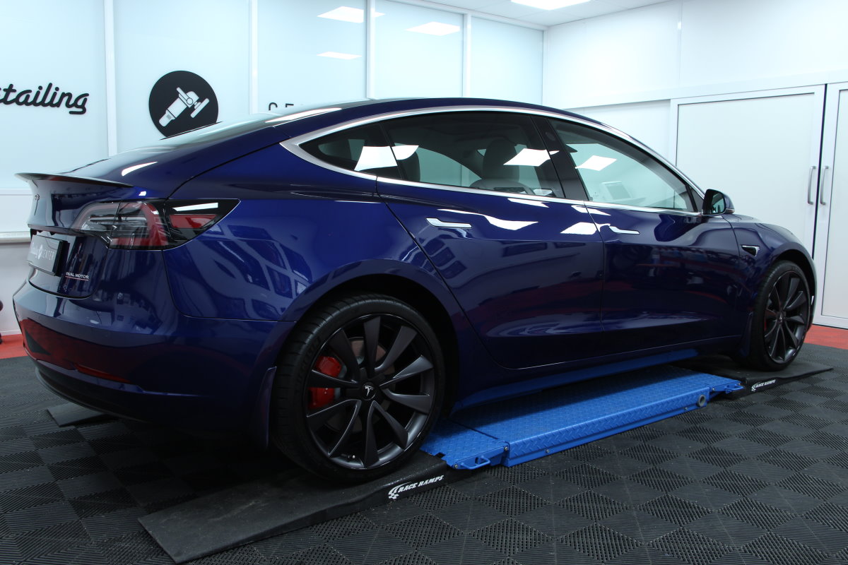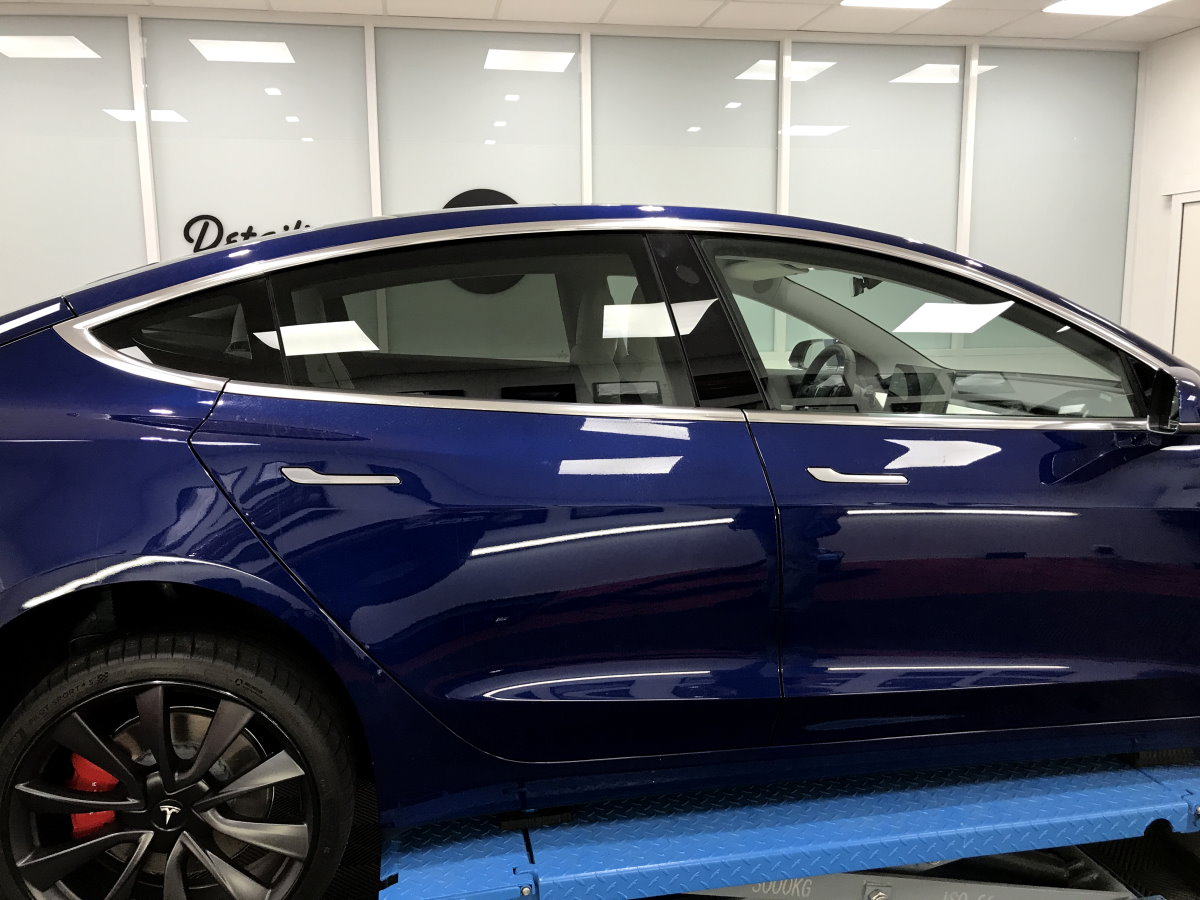 Cette TESLA Model 3 Performance en livrée Bleue Outremer m’a été confiée par son propriétaire pour un traitement céramique sur base véhicule neuf selon la formule V1 spécifique au modèle.