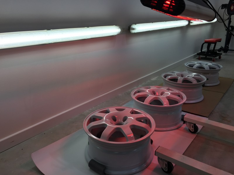 Nous traitons les jantes démontées si elles sont neuves, mais pouvons également démonter vos roues, les traiter en 2couches (avec durcissement sous lampes IR) et les remonter au couple de serrage constructeur (clé dynamométrique).